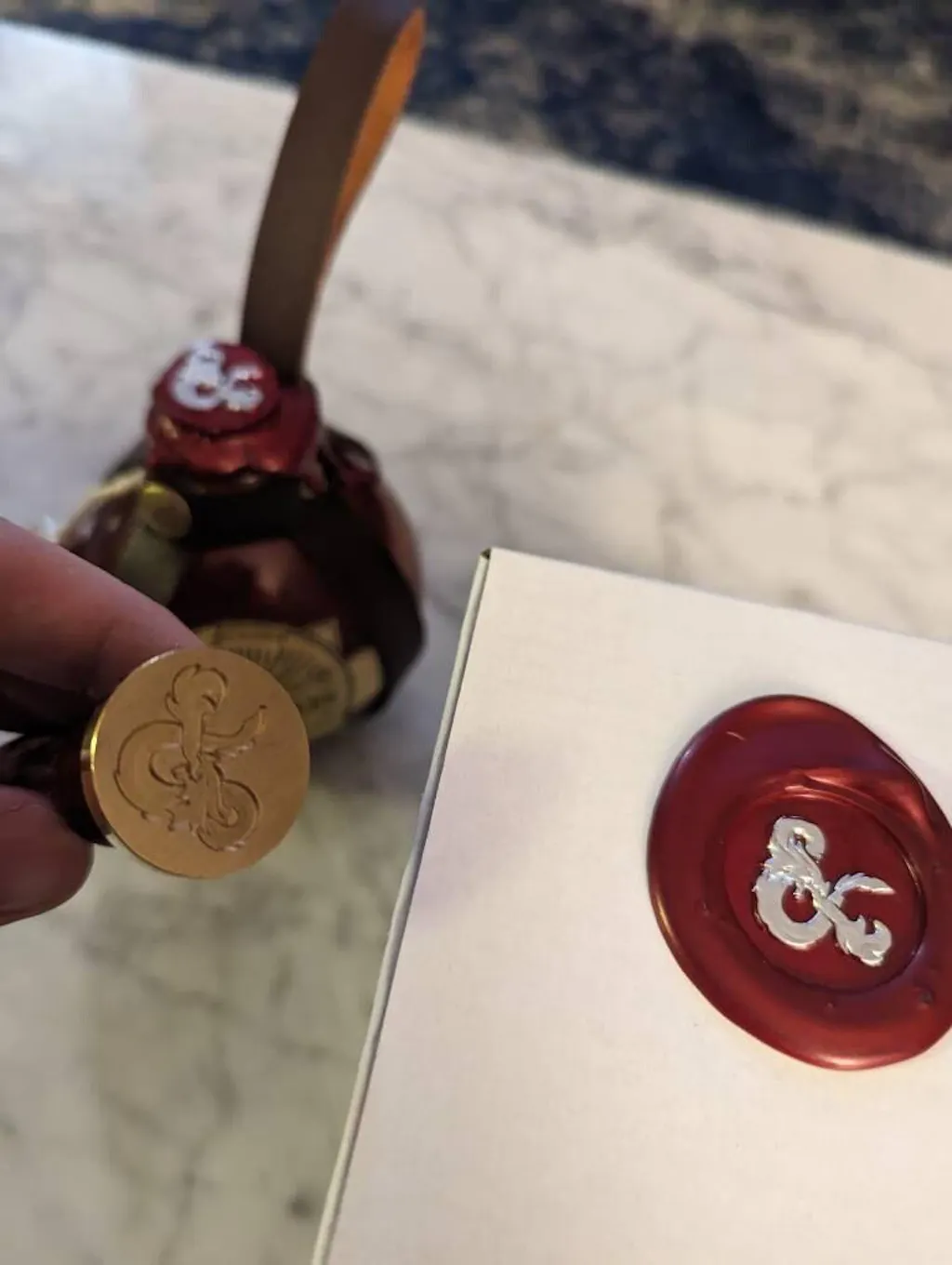Kreiere die schönsten Designs mit dem Dungeons and Dragons - Siegelstempel! Perfekt für deine Karten, Geschenke, Verpackungen, (Hochzeits-)Einladungen oder Kreativprojekte. Dieser Siegelstempel ist 25 mm groß und mit nur 3 Wachsperlen kannst du entzückende Wachssiegel zaubern. Das Wachssiegel, das du auf dem Bild siehst, haben wir mit unseren Wachsperlen in Silber gemacht.