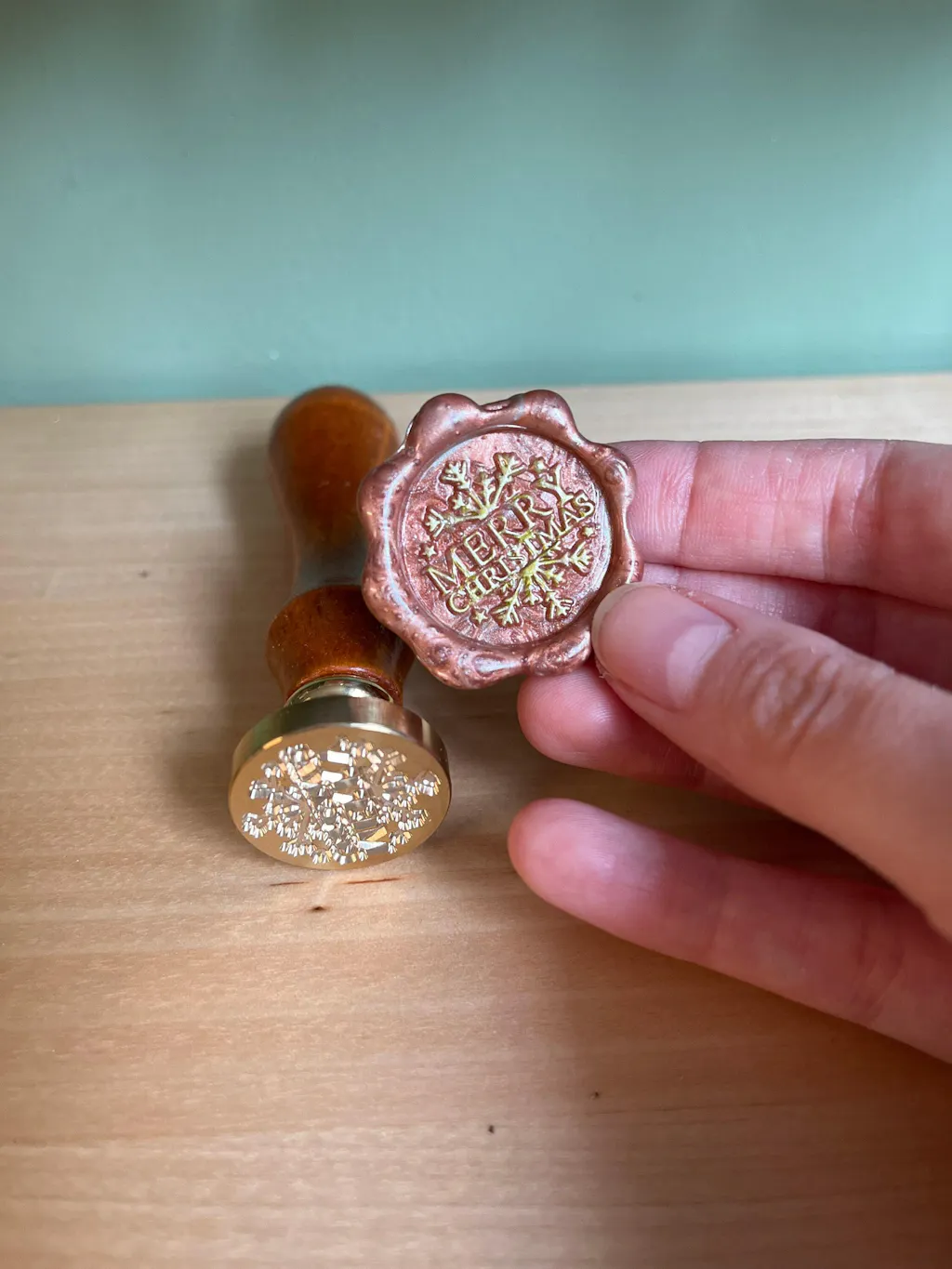 Kreiere die schönsten Designs mit dem Merry Christmas - Siegelstempel! Perfekt für deine Karten, Geschenke, Verpackungen, (Hochzeits-)Einladungen oder Kreativprojekte. Dieser Siegelstempel ist 25 mm groß und mit nur 3 Wachsperlen kannst du entzückende Wachssiegel zaubern. Das Wachssiegel, das du auf dem Bild siehst, haben wir mit unseren Wachsperlen in Gold gemacht.