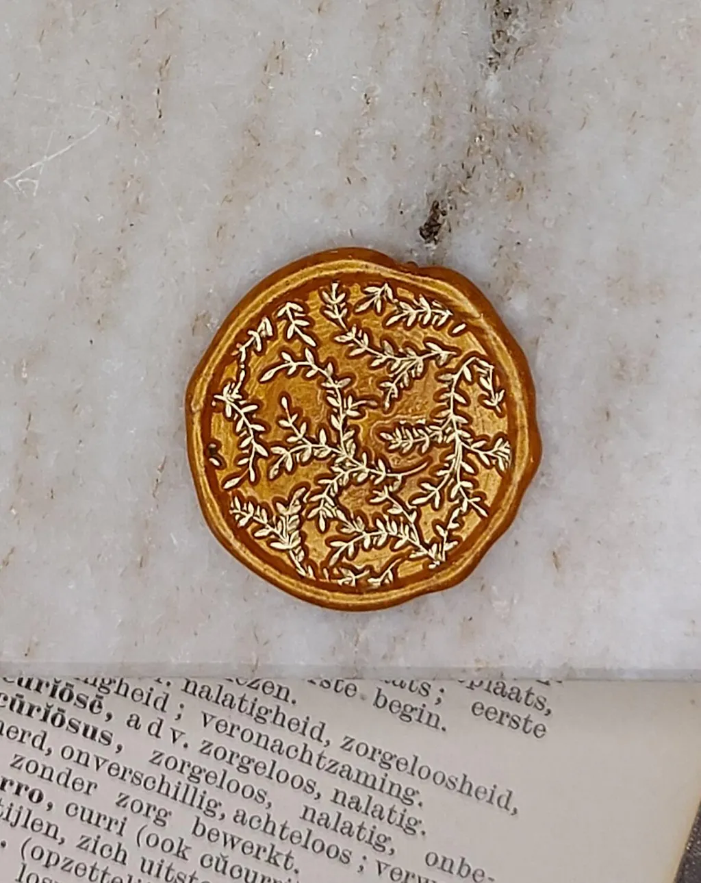 Make the most stunning creations with the Leaves Pattern wax seal stamp! Perfect for your cards, gifts, packaging, (wedding) invitations or creative projects. This wax seal stamp is 25 mm and with only 3 wax beads you will make a beautiful wax seal. The wax seal in the photo was made with our Copper sealing wax.