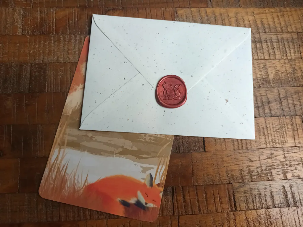 Maak de mooiste creaties met de fox wax stempel! Perfect voor je kaarten, cadeautjes, verpakkingen, (bruilofts)uitnodigingen of creatieve projecten. Deze wax stempel is 25mm en met slechts 3 wax beads maak je een prachtige waxzegel. Op de foto is de zegel gemaakt met onze Orange wax beads.