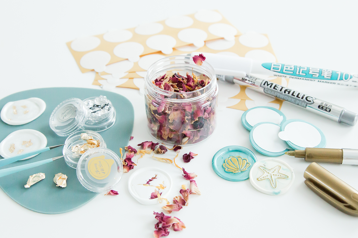 Wil je jouw zegel iets meer opfleuren? Dan kan dit (letterlijk) met onze gedroogde bloemblaadjes of golden/silver flakes. Plaats deze in de hete wax laat je zegels nog meer schitteren!